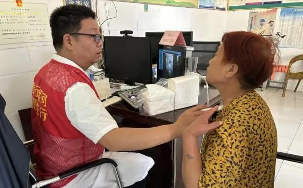 義診活動現場,醫療專家志愿者免費為村民測量血壓、手指血糖,做骨密度檢測、心電圖、甲狀腺彩超、體格檢查、疾病診斷,提供用藥指導、功能鍛煉、健康咨詢等。對于前來問診的村民,專家們耐心細致地為他們解疑答惑,提供個性化的健康指導。通過全面的身體檢查發現,部分村民存在未察覺的健康問題,醫療專家們及時為村民提供治療建議,做到疾病早發現、早診斷、早治療,降低了疾病的發生和惡化風險。此次共義診約150余人,發放健康宣傳資料約450余份。