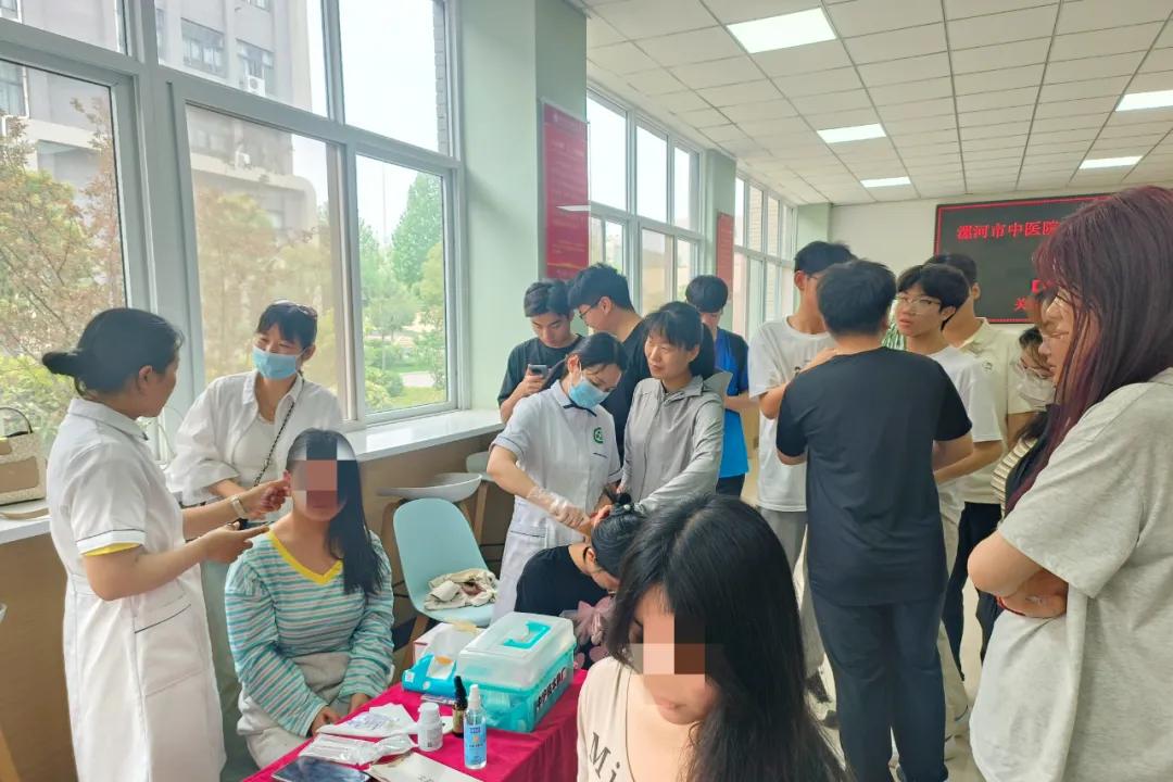 本次活動精心組織了由頭痛失眠科、中醫內科、針灸推拿科、皮膚科、疼痛科、外科、男性科等多學科專家組成的醫療團隊,為師生提供專業診療服務?;顒赢斕?,漯河市中醫院門診部七大科室的專家們早早地來到了現場,準備迎接前來咨詢的師生們?,F場人頭攢動,每個科室前都排起了長隊。專家們耐心細致地詢問病史、查體、開具處方,他們不僅現場解答了師生們的疑問,還傳授了一些中醫養生和保健的知識?,F場特別設置了中醫特色治療體驗區和中醫藥衍生產品展示區,通過推拿、針灸等傳統療法體驗讓師生們親身體驗中醫拔罐、刮痧、艾灸等特色療法,活動過程中還穿插健康知識宣講,發放了健康知識宣傳頁,向師生們普及了常見病、多發病的預防、健康養生知識。