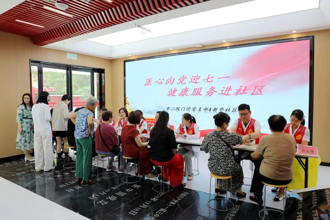 6月25日上午,市二院黨委書記魏松、紀委書記孟德陽帶領門診黨支部黨員志愿者到新華街社區開展“醫心向迎七一 健康服務進社區”義診宣傳活動,以實際行動向黨的生日獻禮。