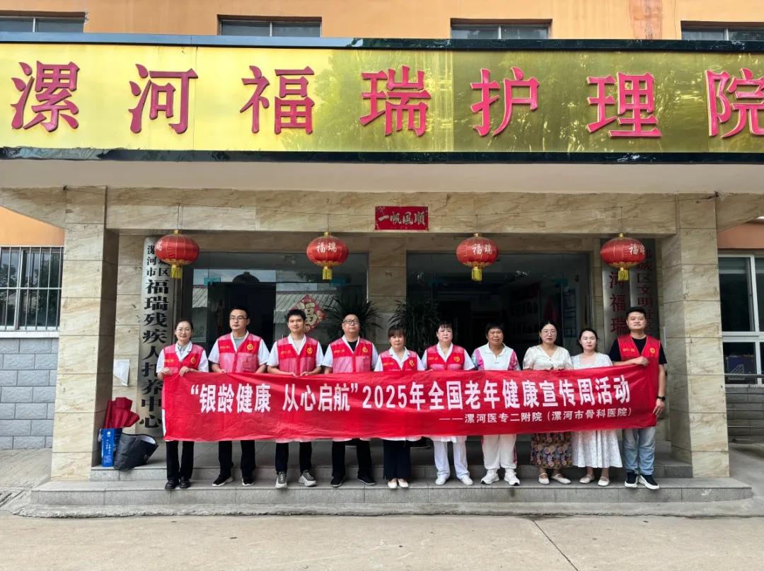 為提高老年人的健康意識、普及健康知識,7月1日下午,漯河醫專二附院(漯河市骨科醫院、漯河市立醫院)組織內科、外科、康復科、眼科等醫療專家組成的志愿者服務隊,來到漯河市福瑞護理院開展“銀齡健康 從心啟航”2025年全國老年健康宣傳周活動。