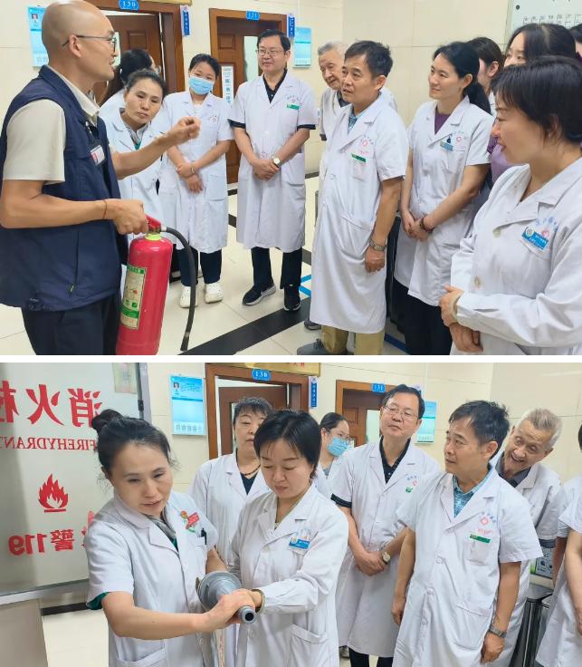 此次活動門診部全體醫護人員參加,并邀請患者及家屬現場觀摩。特邀市消防工程師現場授課,消防工程師結合近年來醫院火災案例,深入剖析門診部消防風險點,強調“預防為主,防消結合”原則。重點介紹了火災預防、初期火災撲救、疏散逃生等關鍵內容。講解了干粉滅火器“提、拔、握、壓”四步操作法,以及消火栓“接水帶、開閥門、持槍頭”的標準操作步驟,通過現場演示強化醫務人員對消防安全知識的掌握。