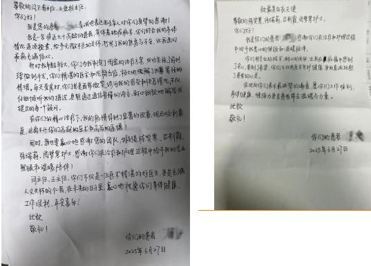 在漯河醫專二附院泌尿-肛腸外科全體醫護人員的精心治療和悉心照料下,患者術后恢復良好,順利出院。出院之際,患者特意寫下兩張感謝信,分別贈予閆衛甫主任團隊和護理團隊。信中,老人深情地寫道:“你們用專業的技術,耐心的關懷,讓我再在病痛中感到了安心,看到了希望,你們不僅用醫術守護健康,更用真誠撫慰了患者的心靈。”(盧闖 田向榮 劉旭 袁錦鈺)