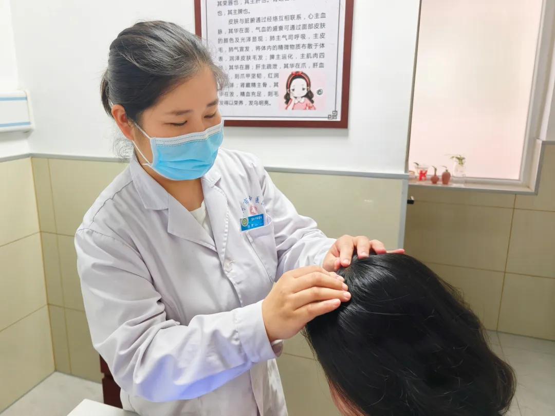 經過內服藥物及中藥配合生發液,生發酊,梅花針等中醫外治手段,3個月后,奇跡發生了,李女士的頭發開始一點點長回來,原本光禿的地方冒出了細密的絨毛。她來復診時,興奮得像個小孩子:“醫生!你看!我敢扎馬尾了!”隨后復診時,她特意送來一面錦旗來表達感謝。