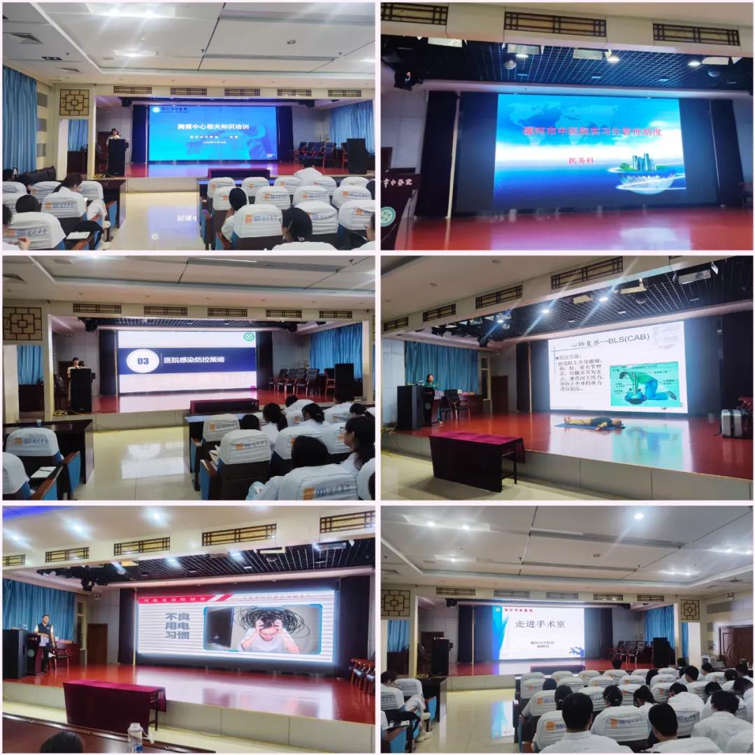 辦公室主任霍海嬌、門診部主任麻曉、內二科主任牛喜平,胸痛中心醫療總監張茜、手術室醫師吳曦、急診科醫師羅旋、感控辦王紅紅、省消防協會教官董露野,分別從醫院文化、如何做好外科系統的實習、內科實習培訓、胸痛中心相關知識、走進手術室、高質量心肺復蘇、院感防控、消防知識等方面對實習生進行培訓。