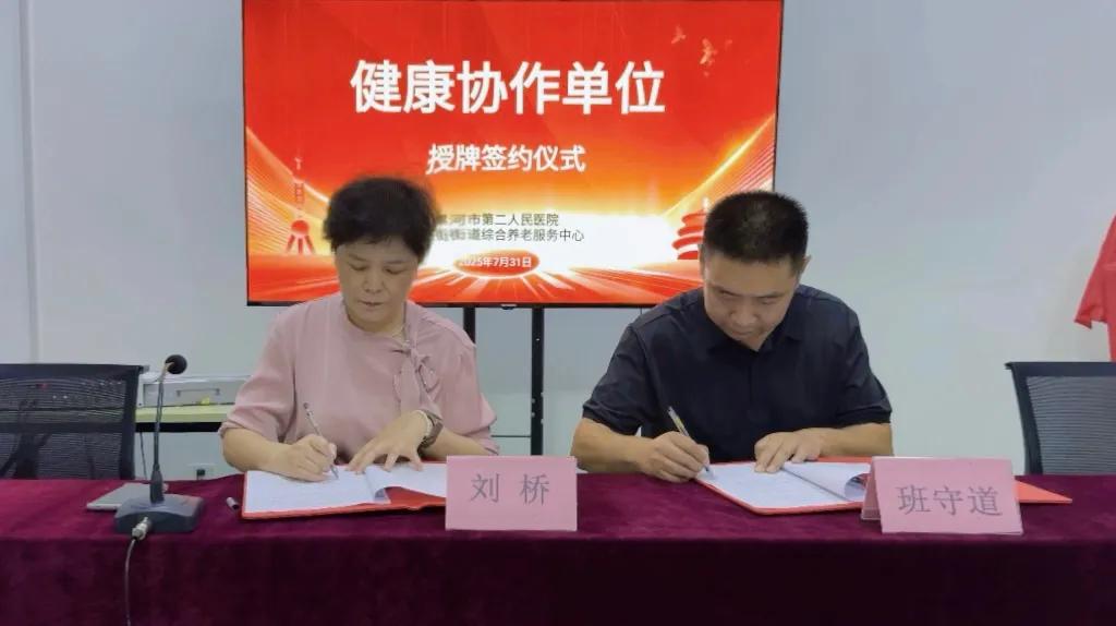 為應對人口老齡化浪潮,滿足老年人多元化健康需求,7月31日上午,市二院與馬路街街道綜合養老服務中心舉行“健康協作單位”授牌儀式,市二院副院長劉橋、醫聯體辦公室副主任張靜出席儀式。