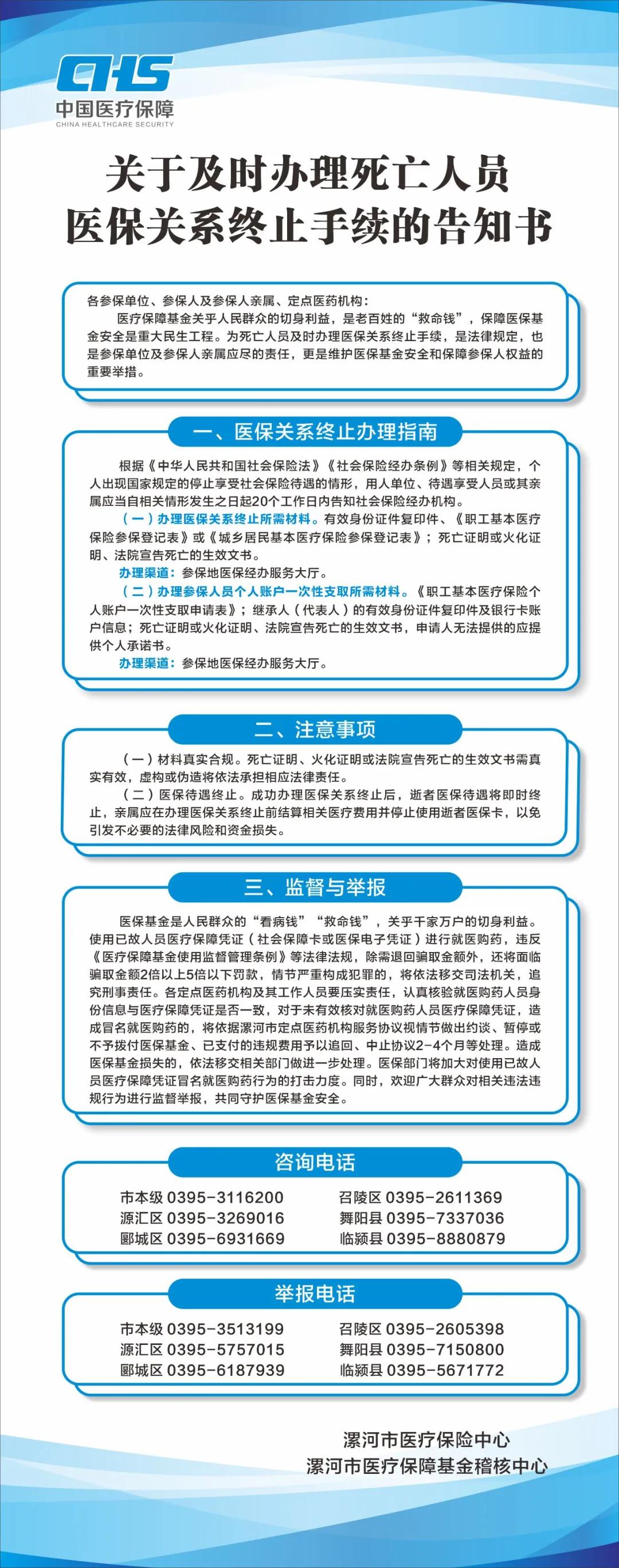 漯河市中醫院:關于及時辦理死亡人員醫保關系終止手續的告知書