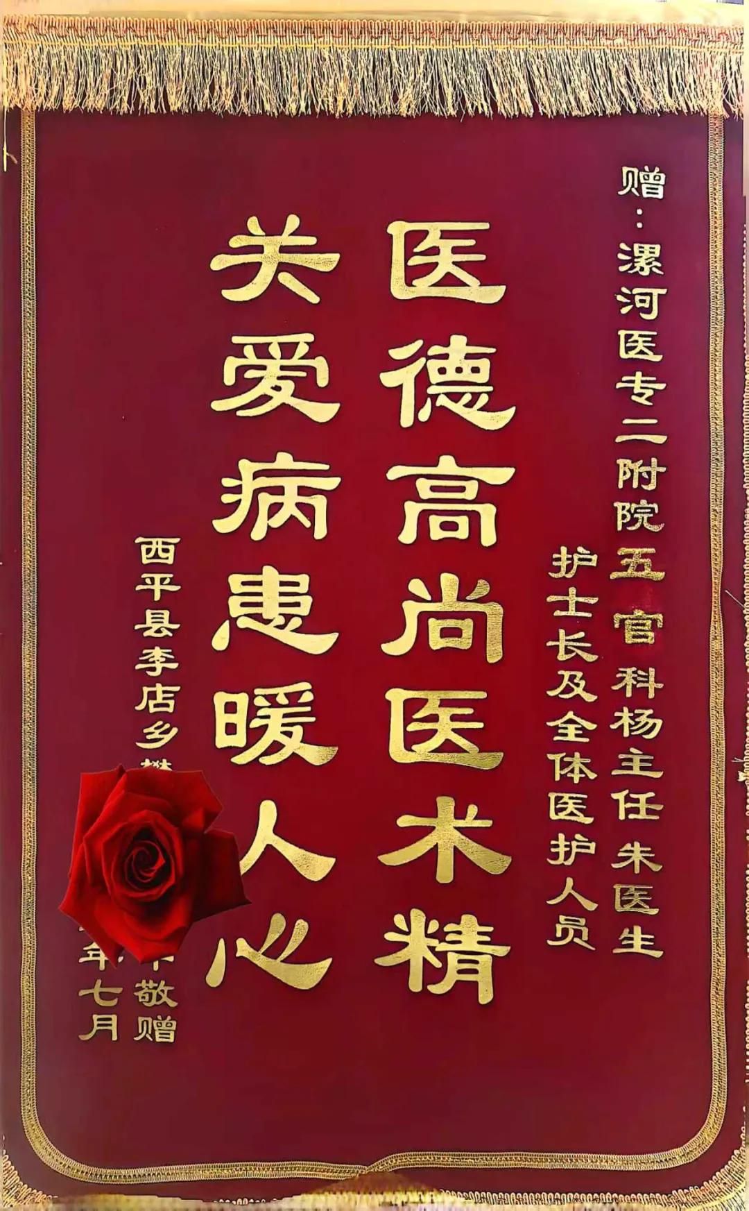 出院那天,患者執意將一面錦旗送到五官科。錦旗上"醫德高尚醫術精,關愛病患暖人心"十四個金色大字,在陽光下熠熠生輝。他顫抖著雙手,將錦旗鄭重交到楊志強主任手中:"謝謝你們,不僅保住了我的眼睛,更保住了一個老兵的尊嚴。"(盧 闖 尹姿文 劉 旭 袁錦鈺)