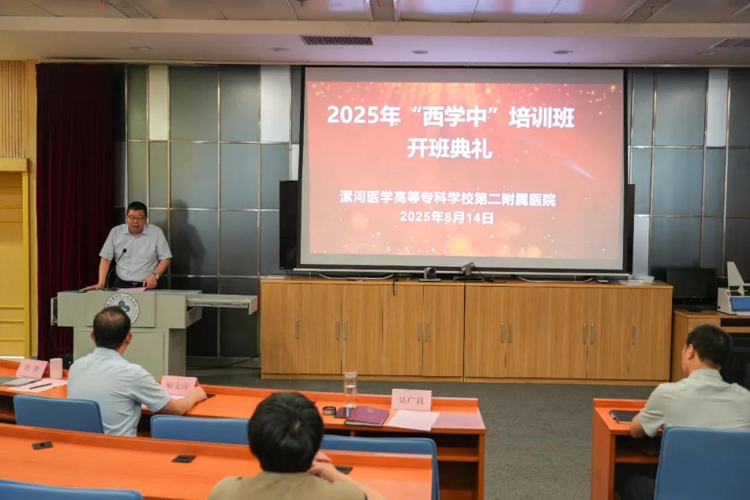 為貫徹落實河南省衛生健康委《關于加強非中醫類別醫師學習中醫培訓工作的通知》的文件精神,提高非中醫類別醫師的中醫藥臨床應用水平,加快中西醫結合人才培養,漯河醫專二附院(漯河市骨科醫院、漯河市立醫院)面向社會招收非中醫類別醫師學習中醫培訓學員。8月14日,2025年度“西學中”培訓班正式開班,共計41名本院及外院學員參加了開班典禮。