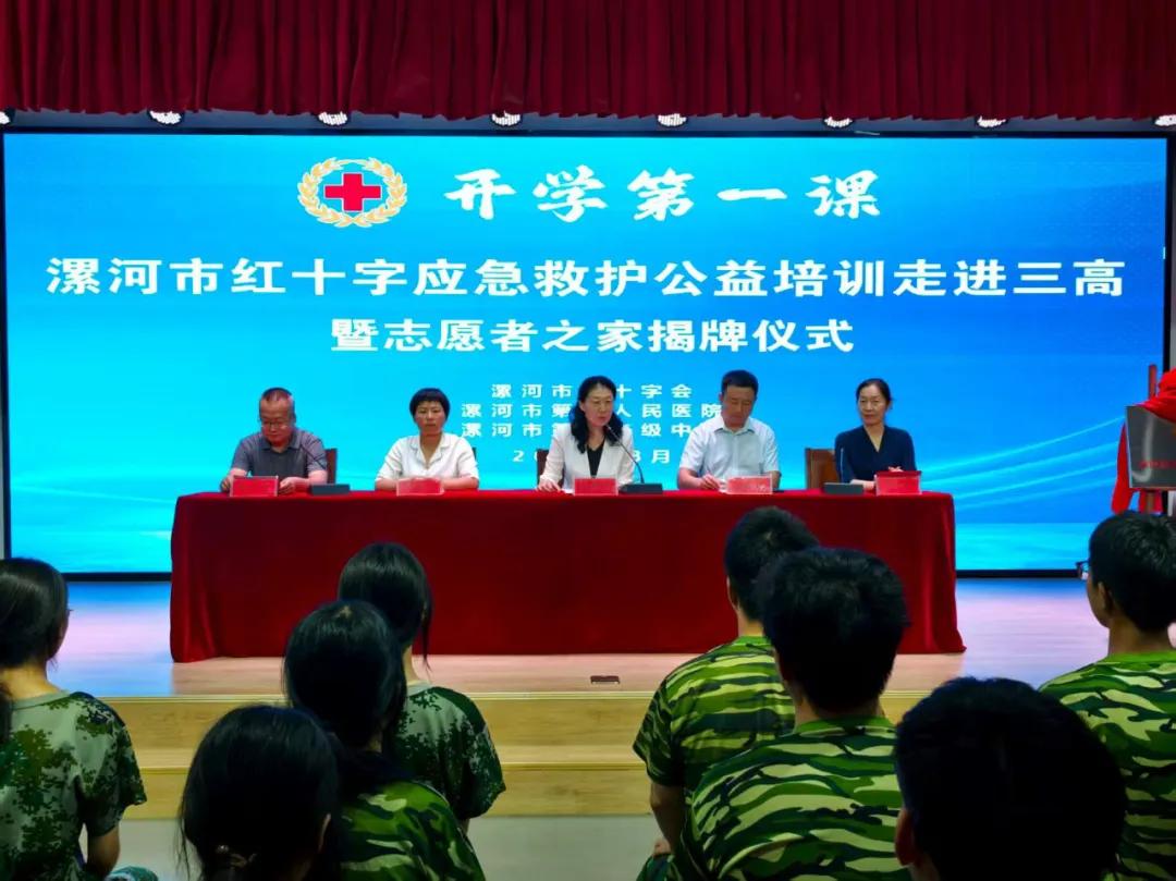 8月21日上午,漯河市紅十字應急救護公益培訓進校園暨志愿者之家揭牌儀式在市第三高級中學舉行,市紅十字會黨組書記、常務副會長孫潁華,市教育局黨組成員、副局長郭俊偉,市二院黨委副書記、院長胡海英,市紅十字會黨組成員、副會長李世杰,市二院紅十字志愿服務隊代表、漯河三高紅十字應急救護社團師生代表等參加本次活動。