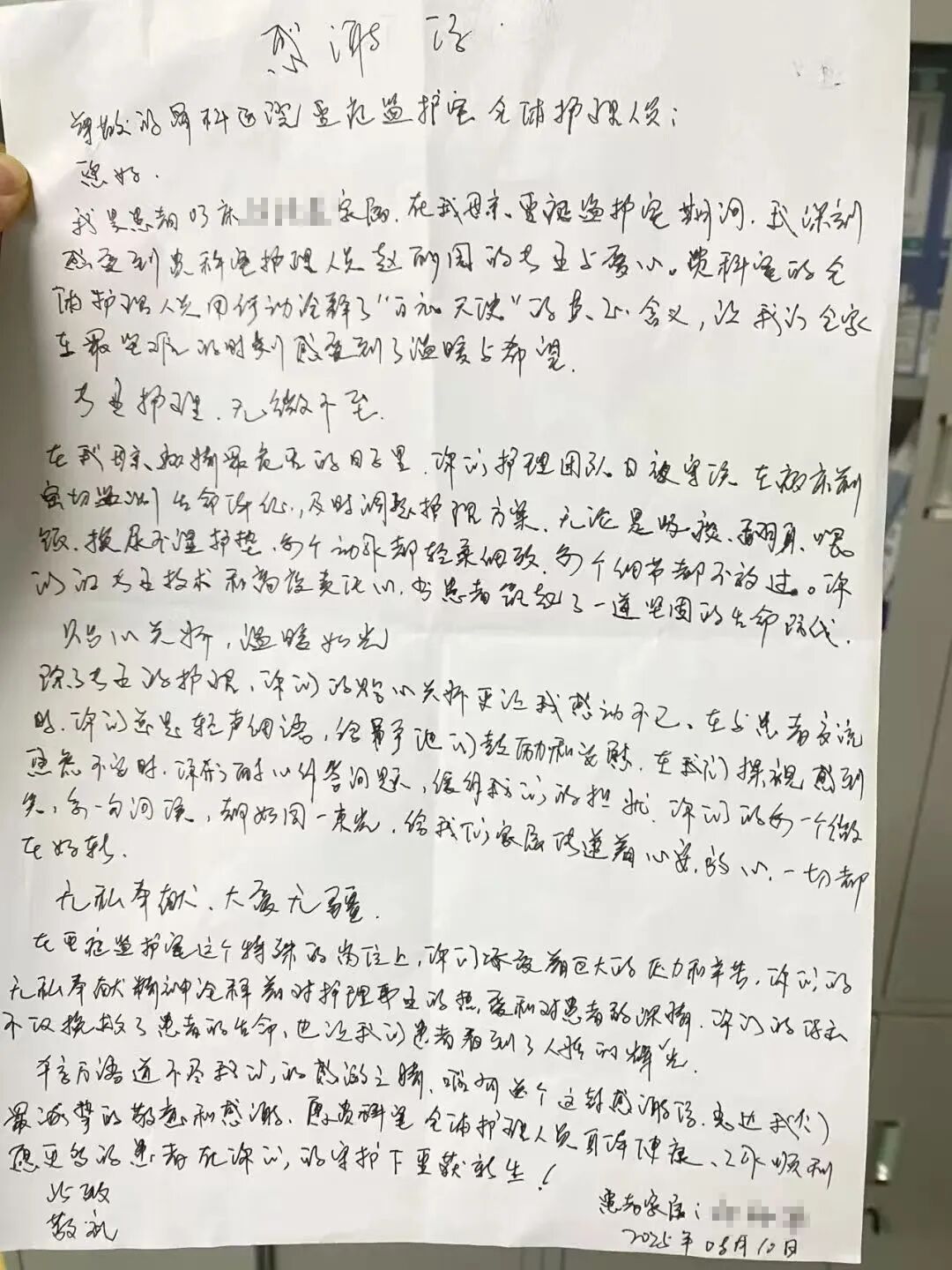 接過這面承載著生命重托和情感交融的錦旗,重癥醫學科主任王鮮穎教授動情地說:“救死扶傷是我們的天職??吹交颊邭v經三次大手術和ICU的考驗后康復,是我們最大的欣慰。今天這份包含歉意的感謝,讓我們更加深刻地感受到肩上的責任。在ICU這個直面生死的地方,溝通難免有摩擦,壓力之下情緒也可能失控,但只要目標一致——為了患者的生命,所有的誤解最終都能在專業、真誠和時間的見證下消融。這份信任的重建,比錦旗本身更珍貴。”