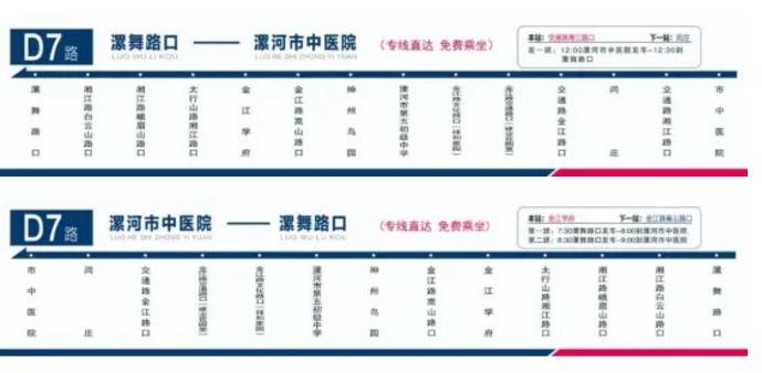 7:30漯舞路口發車—8:00到達漯河市中醫院院內