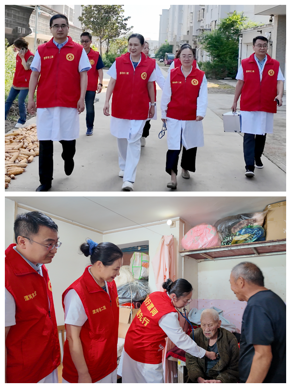 在得知村中兩名百歲老人因行動不便無法前往義診現場后,全國先進工作者、全國“五一”勞動獎章獲得者、中醫針灸科主任朱青霞帶領醫護人員上門為老人服務,進行血壓、血糖測量,心電圖檢查,詢問日常飲食和作息情況等,并根據老人的身體狀況給予了針對性的建議和康復指導。醫護人員還為老人講解了常見疾病的預防知識,叮囑老人要注意保暖、合理飲食。老人及其家屬對市二院專家團隊的上門服務感激不已,連聲道謝。