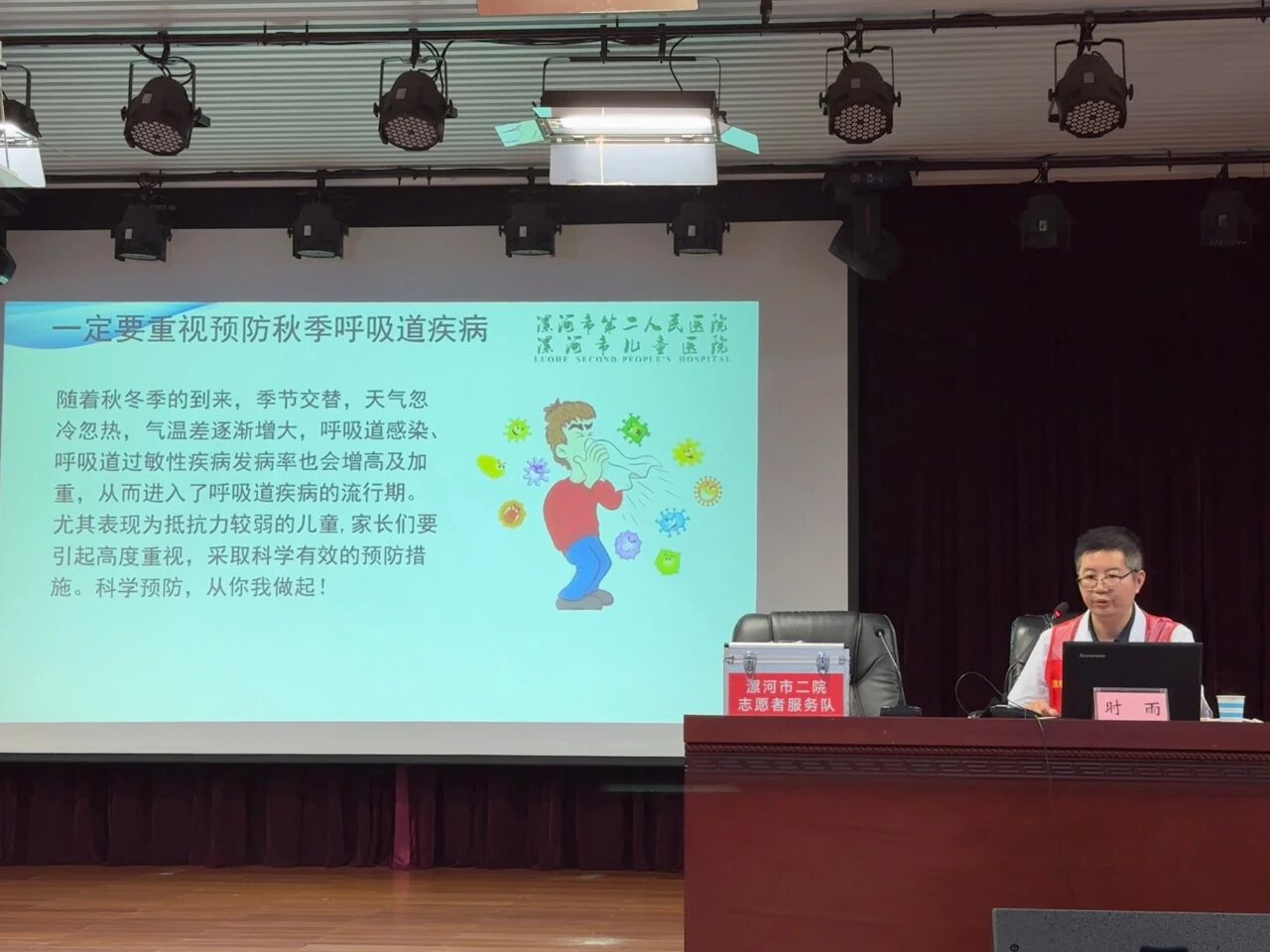 為切實提升職工健康防護意識與應急處置能力,9月25日下午,市二院志愿服務隊應市園林綠化養護中心邀請,開展了主題為《關愛健康 樂享金秋》的秋冬季兒童健康防護與應急急救技能健康知識講座。小兒心血管內科主任時雨、急診科副主任醫師周嚴威分別進行授課,市園林綠化養護中心近70名職工現場參與學習。