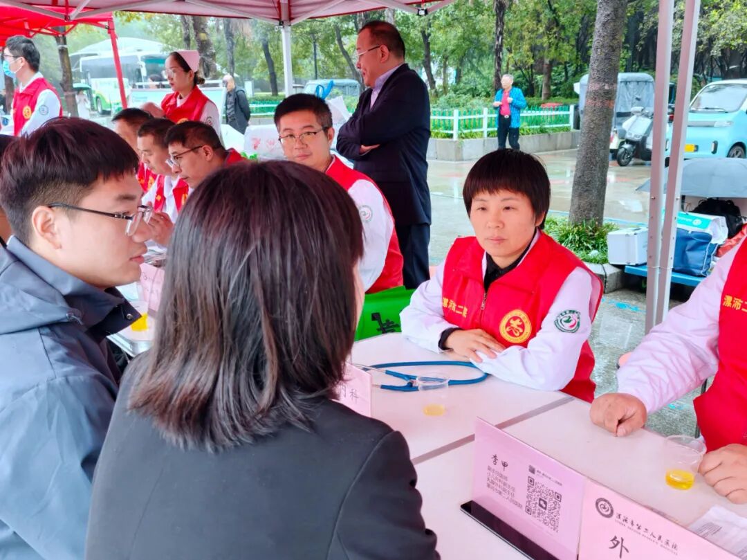活動由黨委副書記、院長胡海英帶隊,盡管現場細雨淅瀝,義診專家們仍提前到位,有序開展診療服務,專家們熱情接待每一位前來咨詢的市民,耐心詢問他們的身體狀況、病史,仔細進行體格檢查,并根據檢查結果給予專業的診斷和治療建議。對于一些患有慢性疾病的市民,專家們還詳細講解了日常飲食、運動、用藥等方面的注意事項,幫助他們更好地管理自己的健康。同時,現場還設置了健康宣傳展板,發放健康宣傳資料,向市民普及常見疾病的預防知識和健康生活方式,增強市民的健康意識和自我保健能力。
