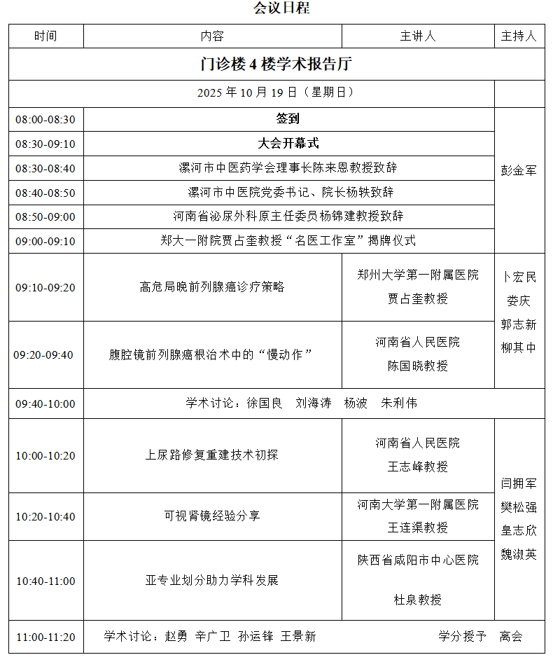 時間:2025年10月19日上午8:00-11:20 地點:漯河市中醫院門診四樓學術報告廳(漯河市源匯區交通路 649 號)