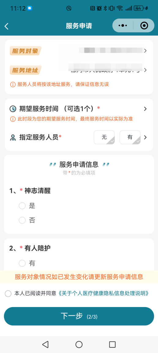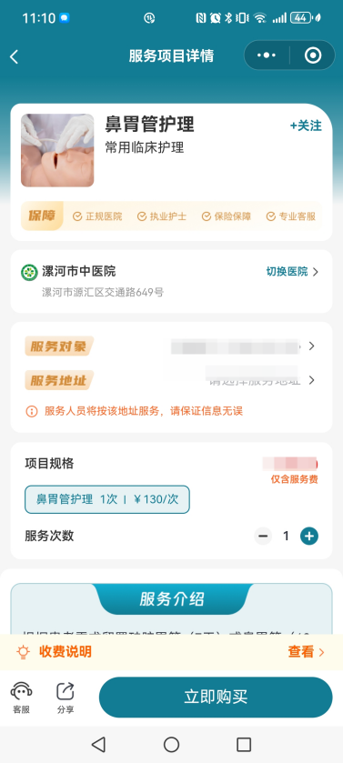 3、選擇項目規格,填寫“服務對象”信息與“服務地址”(首次使用需實名認證)