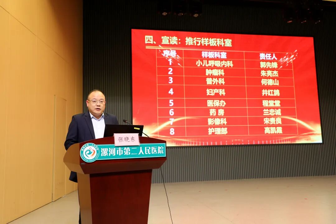 副院長張曉東宣讀了醫院8S管理推行樣板科室名單。醫院確定了小兒呼吸科、腫瘤科、普外科、婦產科、醫保辦、藥房、影像科、護理部8個科室為首批試點,肩負起“先行探索、樹立標桿”的重要使命。