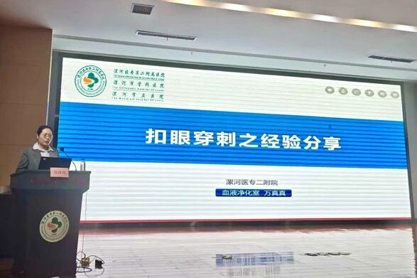 漯河醫專二附院血液凈化室骨干萬真真以《扣眼穿刺之經驗分享》為題,結合實際案例,細致講解了扣眼穿刺技術的操作要點、隧道建立的技巧、日常維護的注意事項以及常見問題,為降低患者穿刺痛苦提供了寶貴的經驗。由郾城區中醫院血液凈化室護士長楚方圓與召陵區中醫院血液凈化室護士長曹冬曉主持會議。