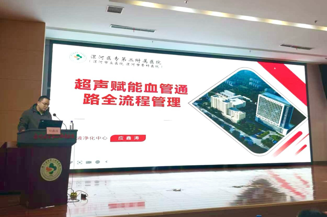 漯河醫專二附院主治醫師應鑫濤分享了《超聲賦能下血管通路全流程管理》。他詳細介紹了如何將超聲技術應用于內瘺的術前評估、術后監測、穿刺引導以及并發癥篩查中,展示了如何實現血管通路管理的“可視化”和“精準化”。由漯河市第六人民醫院血液凈化室護士長陳芳芳與召陵區人民醫院血液凈化室護士長梁君芳主持會議。