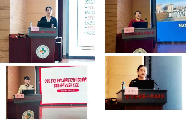培訓環節,急診重癥監護室主任王春枝、藥學部抗感染臨床藥師劉會茹、藥學部抗感染臨床藥師蔣玉龍、檢驗科副主任張月玲,分別圍繞《是治療,還是打擾?-重新審視我們的抗菌藥物處方》《我院抗菌藥物應用存在問題及分析》《常見抗菌藥物的用藥定位》《微生物標本規范采集》進行內容分享。