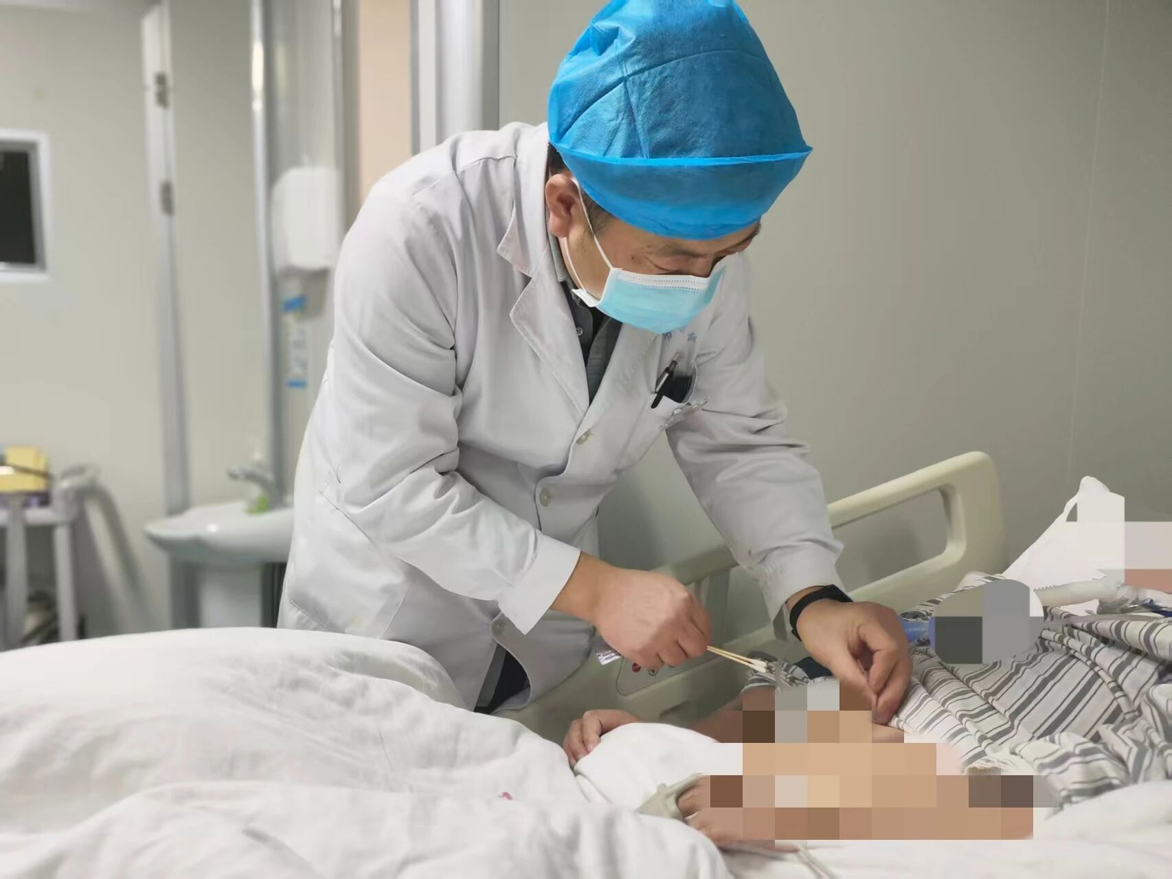 治療期間,患者出現嚴重腹脹,影響營養吸收與呼吸功能,西藥治療緩解不佳??祻涂茍F隊及時介入,發揮中醫優勢:通過針灸、中藥灌腸、中藥外敷、耳穴壓豆等綠色中醫療法,與西醫治療形成互補,腹脹難題得以緩解,為全面康復掃清障礙。