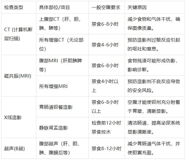 重要提示:以上為一般原則。如果這些部位的平掃檢查升級為增強掃描(即需要注射造影劑),則通常需要按要求空腹。最穩妥的做法是務必以檢查前醫生或放射科提供的具體須知為準。