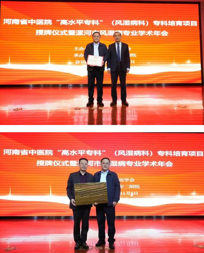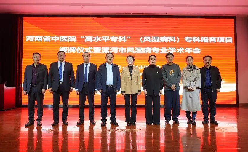 河南省中醫院風濕科主任孟慶良教授、漯河市衛健委副主任于宏、漯河市醫學會秘書長花云,漯河醫專二附院院長王齊超、副院長吳廣良、紀委書記劉國鋒等出席會議。
