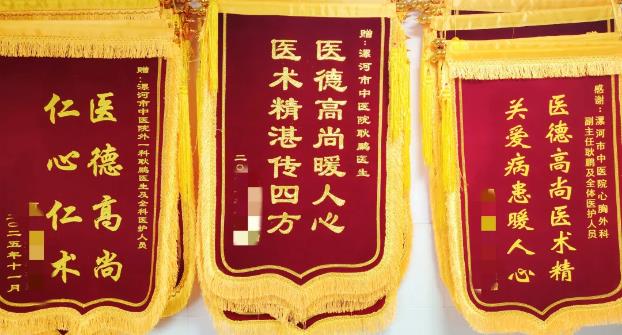 近日,漯河市中醫院外一科副主任耿鵬的診室里暖意融融,一周之內,三面飽含深情的錦旗相繼送達,“醫德高尚 仁心仁術”“大醫精誠德醫雙馨 仁心仁術情暖人心”等燙金大字,不僅見證著患者的康復喜悅,更鐫刻著一位醫者對職業的敬畏與堅守。