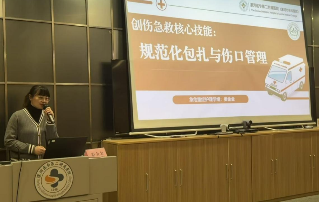 急危重癥護理學組組長婁金金聚焦《創傷急救核心技能:規范化包扎與傷口管理》,結合“黃金1小時”救治原則,強調包扎操作的時效性與規范性,通過對比不同傷口處理案例,演示正確操作對控制出血、預防感染的關鍵作用,夯實醫護人員的基礎急救能力。
