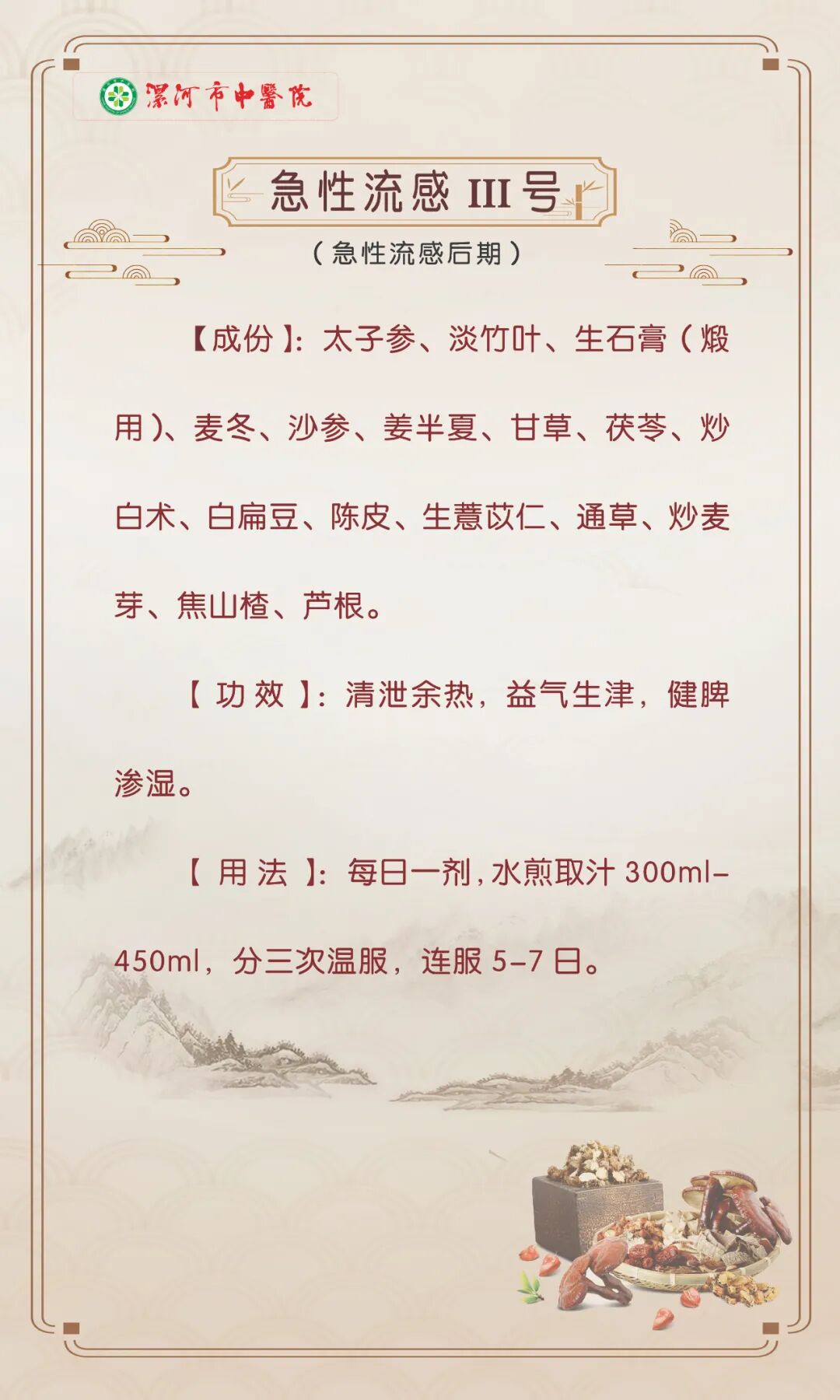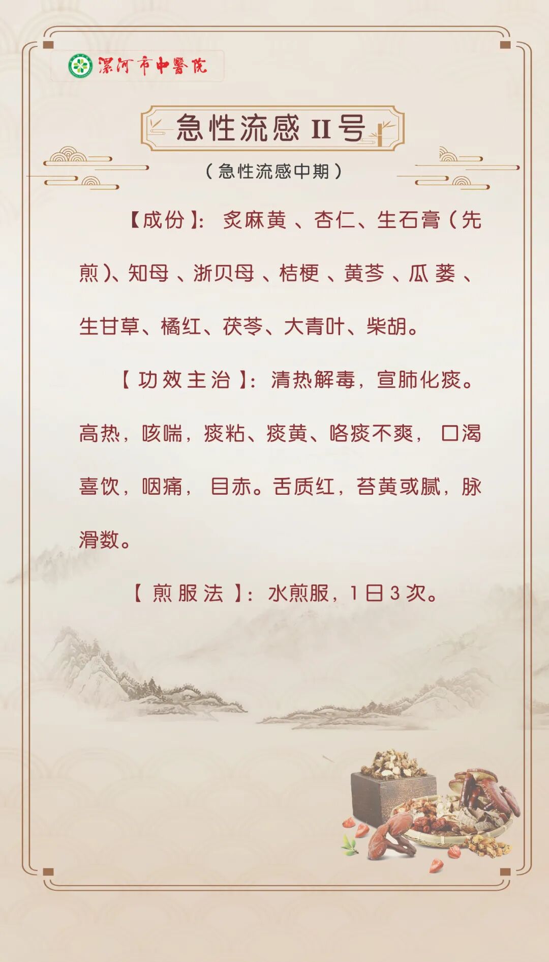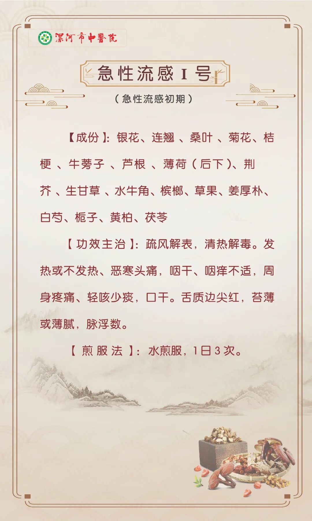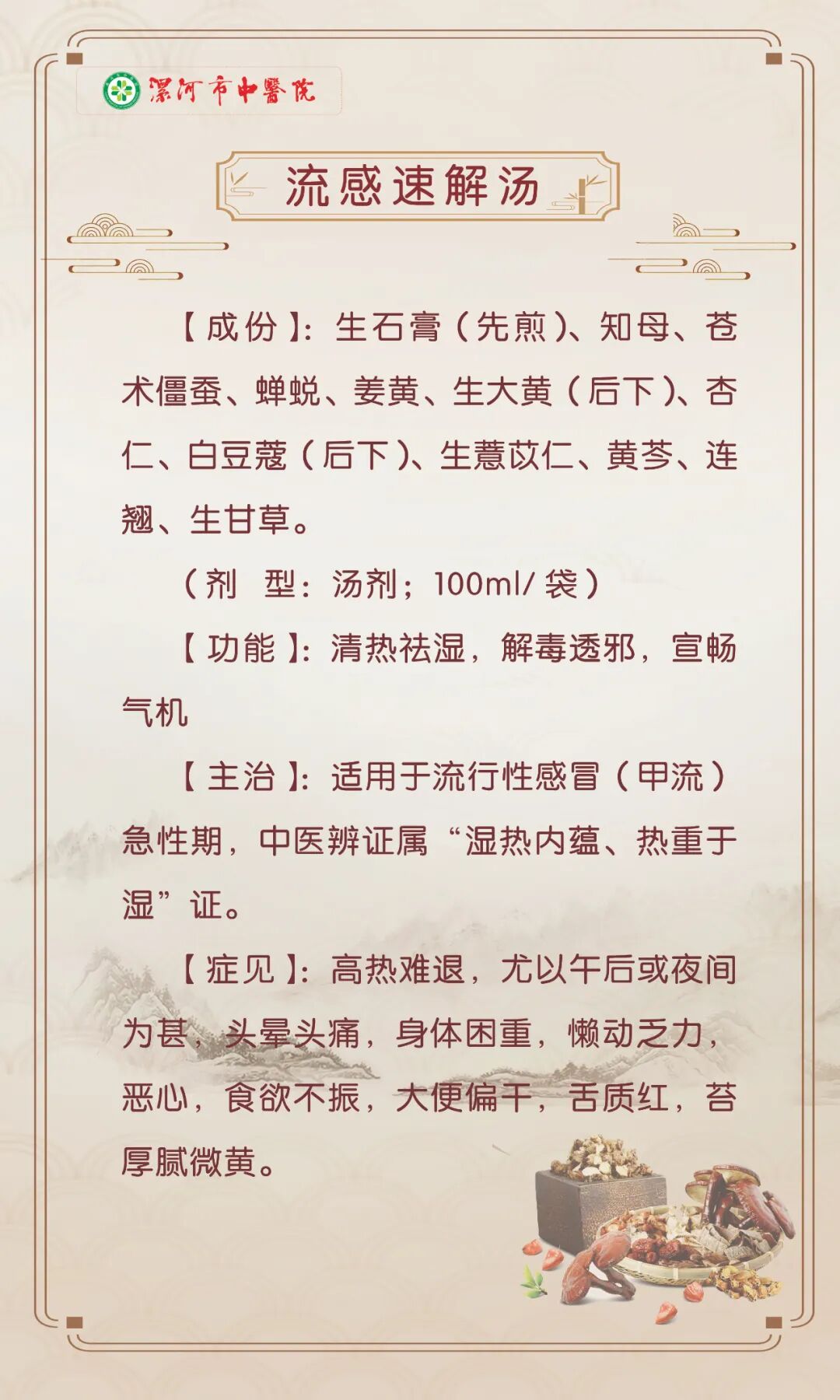 根據河南省疾控中心傳染病及相關健康危險因素監測數據,漯河市中醫院積極組織專家對近期流感防治工作進行綜合研判,充分發揮中醫藥特色優勢,科學規范開展中醫藥防治流感工作,現將中醫藥防治流感方劑予以公布: