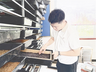 記者在建成不久的1000平方米養殖基地看到,養殖盒層層疊放,溫控設備將室內溫度控制在28℃。“你看這些蟲體多么飽滿。再過半個月,我們就能收獲首批干蟲。”胡濱洋說。