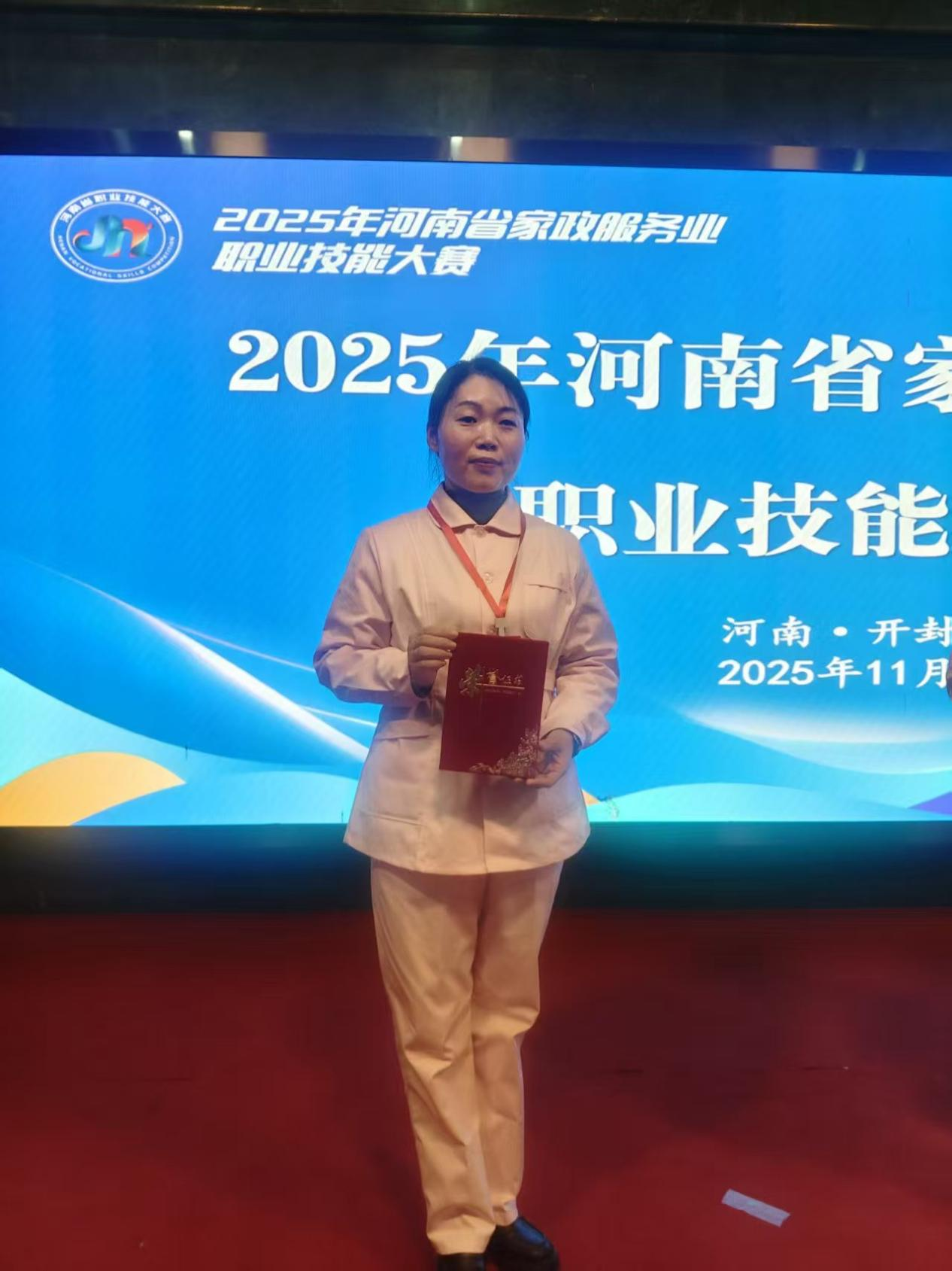 在近日結束的2025年河南省家政服務業職業技能大賽上,代表漯河市參賽的臨潁縣選手朱小閣表現出色,勇奪母嬰護理員賽項三等獎,展現了臨潁縣家政服務人員的專業技能與職業風采。