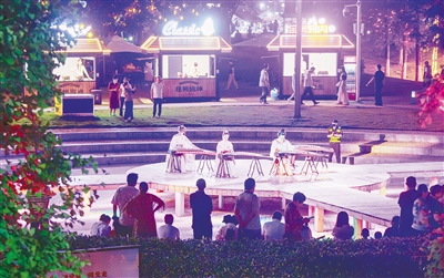沙灘酒吧、“漯河宴”音樂餐吧、咖啡廳、微醺小酒館,美食業態延伸發展,吸引眾多市民前來拍照打卡、品嘗特色美食;