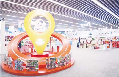 中國食品名城品牌館食品展廳,本地休閑食品整齊陳列。