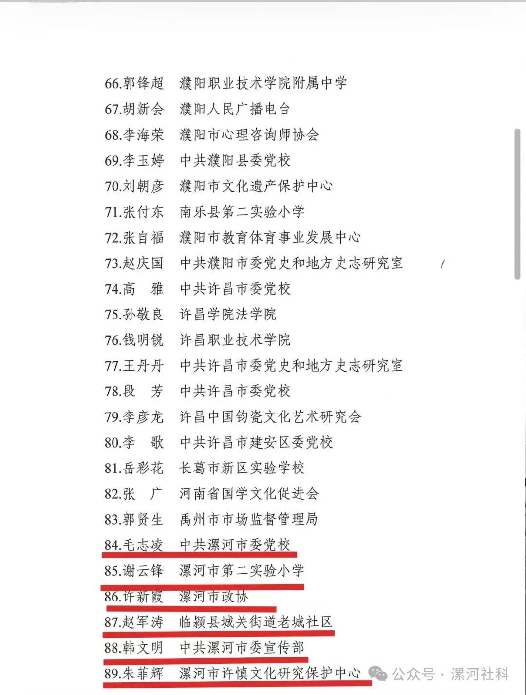 2024年社科普及志愿服務活動表現突出百姓宣講員(9名):毛志凌(中共漯河市委黨校);謝云鋒(漯河市第二實驗小學);許新霞(漯河市政協);趙軍濤(臨潁縣城關街道老城社區);韓文明(中共漯河市委宣傳部);朱菲輝(漯河市許慎文化研究保護中心);王鶴(中共漯河市郾城區委黨校);劉波濤(漯河市源匯區嵩山路學校);王思寧(源匯區順河街街道辦事處)