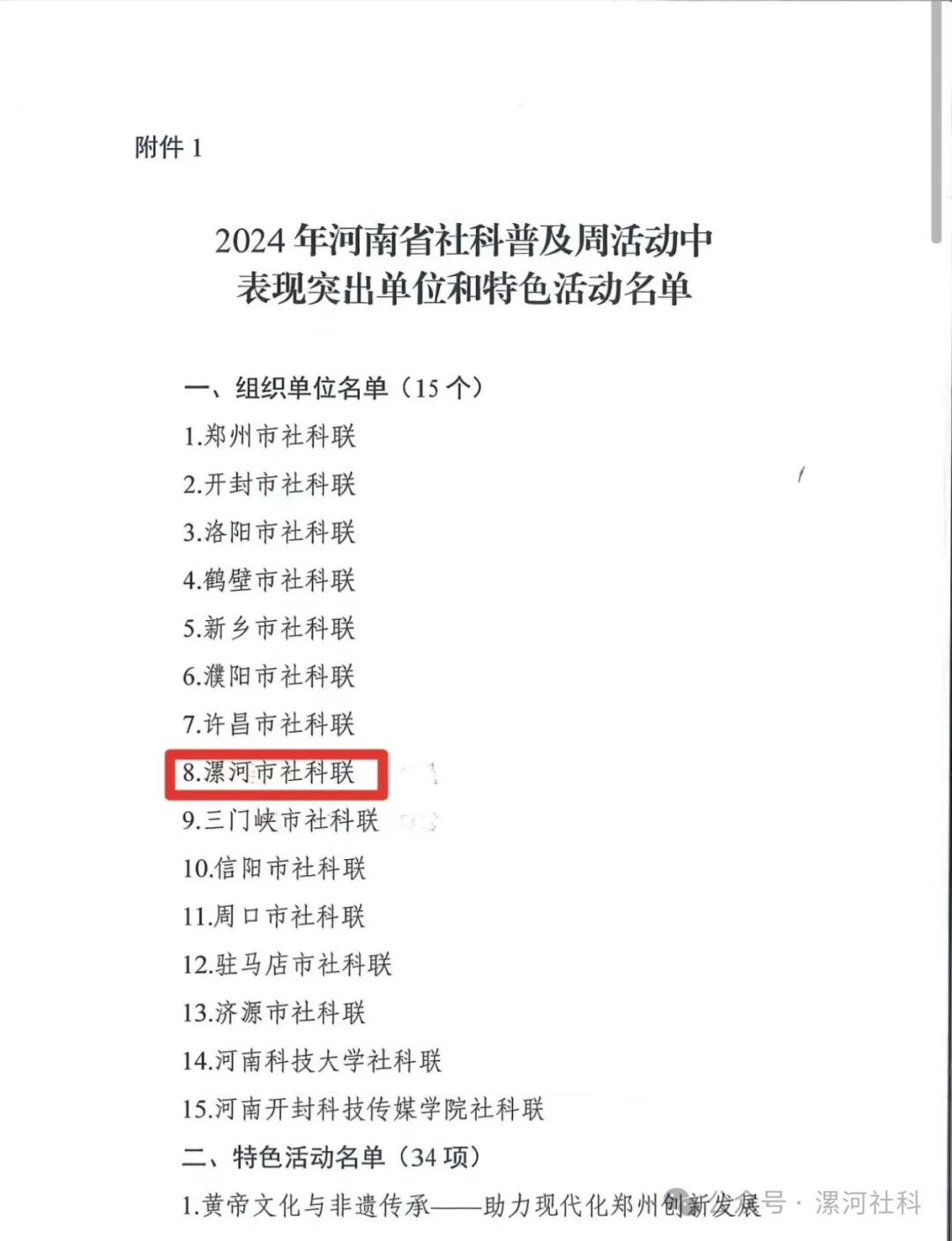 近日,河南省社科聯下發《關于表揚2024年社科普及活動中表現突出單位、個人和特色活動的通報》,我市6個社科組織、16名個人、8個活動項目獲得表揚。
