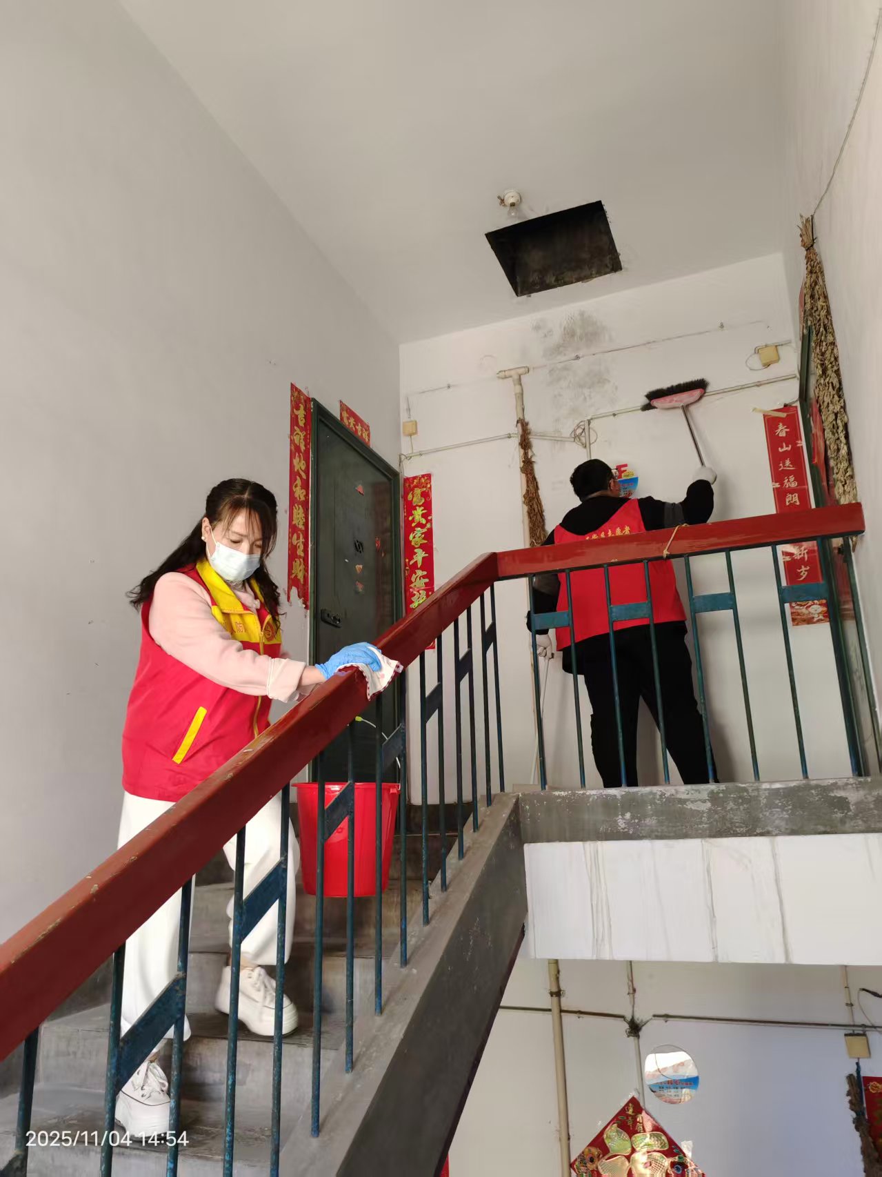步梯扶手的“溫柔擦拭”: 日積月累的灰塵讓原本光滑的扶手變得斑駁。志愿者們手持抹布,浸濕、擰干,從頂層開始,一級一級臺階地向下擦拭。每一根欄桿、每一寸扶手都恢復了木制或鐵藝的本色,居民上下樓時,掌心觸及的不再是灰塵,而是一份安心。