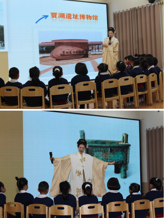 漯河市藝術幼兒園魏偉老師執教的教學活動《假如文物會說話》,以賈湖骨笛、后母戊鼎等文物為線索,通過聆聽八千年骨笛聲音、“文物回家”地圖互動等活動,讓幼兒觸摸文化根脈、增強民族自豪感,踐行“資源強德”路徑。三節教育活動摒棄說教、善用共情,將思政元素與游戲、體驗深度融合,盡顯“隨風潛入夜,潤物細無聲”的教育智慧。