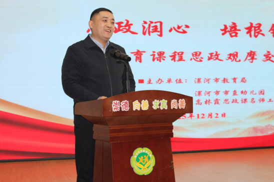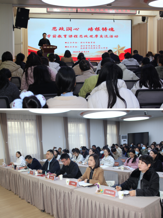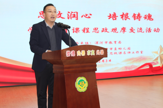 霜染初冬凝暖意,教潤童心啟新章。為深入貫徹落實立德樹人根本任務,探索符合幼兒年齡特點的課程思政模式與方法,提升幼兒園教師開展課程思政的能力與水平,增進園所間的交流學習,12月2日上午,漯河市學前教育課程思政觀摩交流活動在市直幼兒園舉行。漯河市教育局黨組成員、副局長聶廣橋出席。市教育局秘書科科長馮文權,市教育教學研究室政治教研員、市大中小學思政課一體化建設委員會秘書長夏忠新,市屬幼兒園主管園長、骨干教師;市幼兒園領航工作室共同體單位、市直幼兒園教育集團主管領導、骨干教師以及市大中小學思政課名師工作室主持人參與了本次活動。