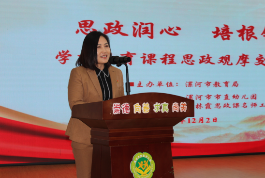 漯河市市直幼兒園黨總支書記王麗亞在致辭中表示,落實好“立德樹人”根本任務,是時代賦予我們幼教工作者的神圣使命。要在幼兒純凈的心靈深處播撒真、善、美的種子,培育他們愛祖國、愛家鄉、愛集體、愛勞動的真摯情感,涵養誠實、友善、守紀的良好品德與行為習慣,幫助他們扣好人生第一??圩?。她簡要介紹了市直幼兒園在幼兒思政教育領域的點滴探索與心得體會,期待在接下來的活動中與教育同仁互學互鑒、凝聚智慧,共同探尋科學育人路徑,筑牢幼兒品德根基。