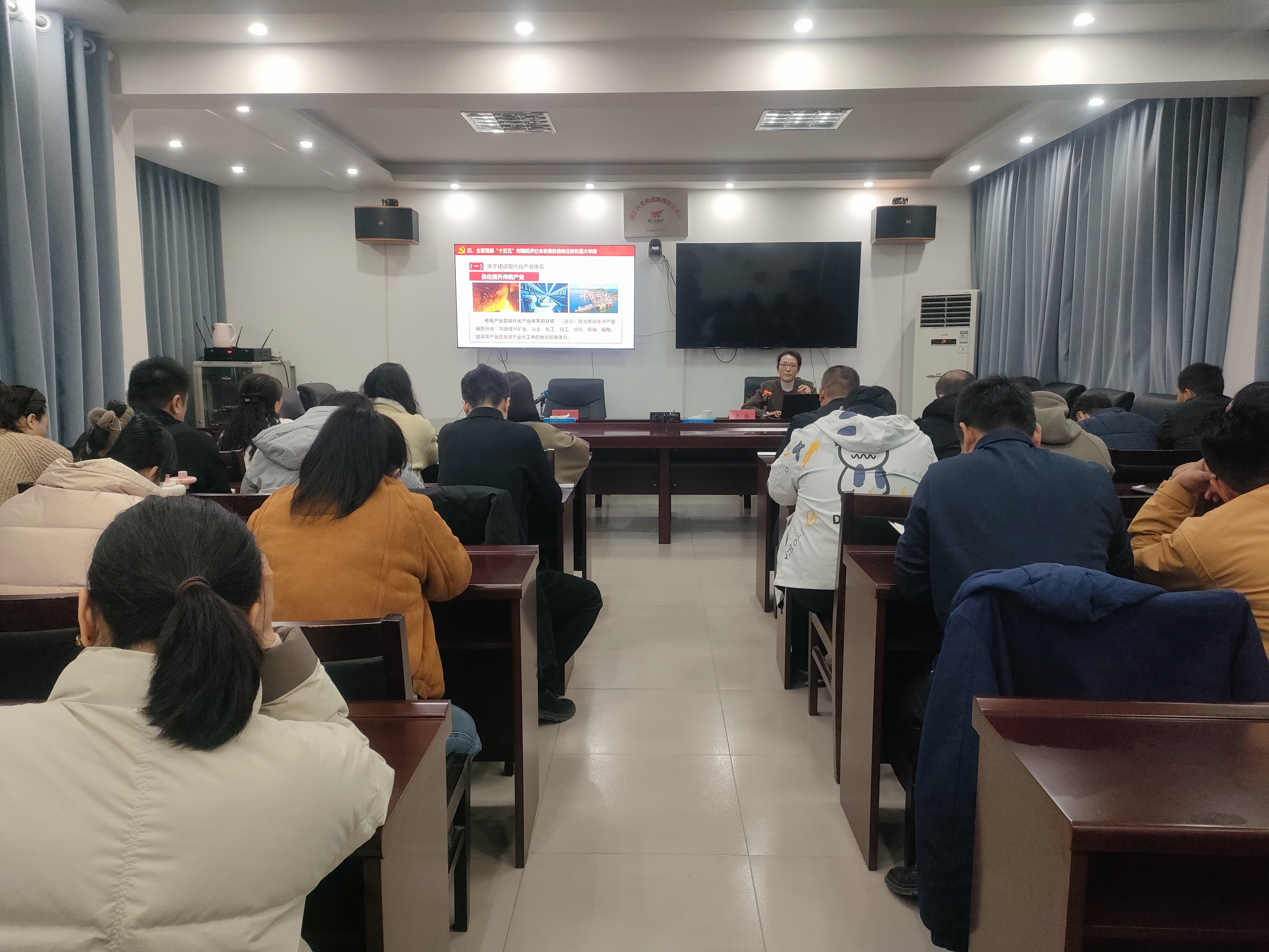 宣講會立足全會精神核心要義,圍繞 “黨的二十屆四中全會召開的基本情況”“‘十五五’時期在基本實現社會主義現代化進程中的重要地位”“‘十五五’時期經濟社會發展的指導方針和主要目標”“‘十五五’時期經濟社會發展的戰略任務和重大舉措”“堅持和加強黨的全面領導,凝聚起推進中國式現代化的磅礴力量” 等方面,對全會精神進行了全面、深入、系統的宣講和闡釋。宣講既有理論高度的精準闡釋,又有實踐維度的深度解讀,為干部職工深化思想認知、找準工作抓手提供了有力指導。
