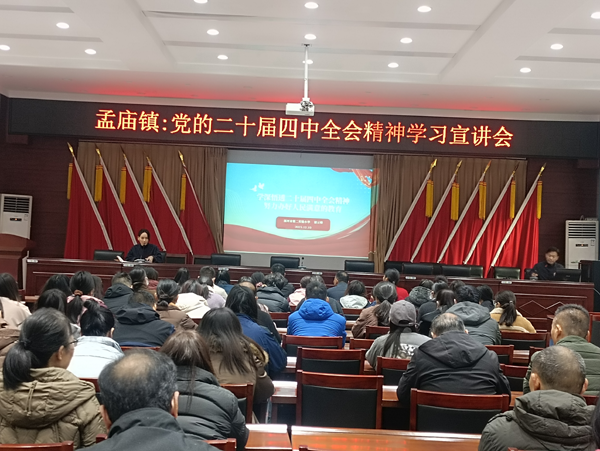 為推動黨的二十屆四中全會精神在基層落地生根,12月10日,孟廟鎮邀請市級“百姓宣講團”成員謝云鋒開展題為“學深悟透二十屆四中全會精神 努力辦好人民滿意的教育”宣講活動。孟廟鎮全體鎮村干部、鎮域內教師代表參加本次學習宣講活動。