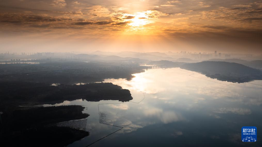 12月14日在武漢市東湖風(fēng)景區(qū)拍攝的日出。
